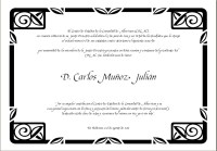 “Por su singular contribución al Centro de Estudios de la Comunidad de Albarracín y su excepcional cooperación con los fines y proyectos del mismo, pudiendo asistir de forma preferencial y destacada a toda clase de actos y reuniones del mismo con voz pero sin voto”.