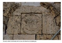 Hasta que pude leer esta inscripción gracias a las fotografías tomadas desde el andamio colocado con motivo de la reciente restauración del edificio, este escudo resultaba un enigma que hacía difícil una interpretación completa del edificio. Aunque el tercer dígito de la data resulta casi ilegible, el descubrimiento del nombre del obispo determinó con precisión a qué década del siglo XVIII correspondía la fecha, ya que este prelado lo fue de Albarracín entre 1781 y 1790, antes de ser nombrado obispo de Osma3.