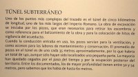El túnel excavado en la roca es de sección cuadrada, con una altura media de 1.95 metros de alto por 1,25 de ancho, aunque en algún punto alcanza los 2,25 metros de altura. Al estar la mayor parte del recorrido labrado en roca caliza tableada, ésta se rompe siguiendo las líneas de fractura y no permite cortes limpios, lo que provoca esas diferencias en cuanto a la altura del techo. De ahí que la terminación de la obra sea bastante rústica, lo que permite apreciar la técnica, así como los instrumentos empleados para excavar esta magna obra. De las huellas dejadas en la piedra (fig. VI) se deduce que para las tareas de excavación fueron empleados picos y punteros de sección triangular.