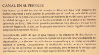 El agua continuaba por la margen derecha del río, siguiendo el mismo recorrido por el que discurre la actual acequia de riego hasta más abajo del Molino de Santa Croche. Estaba construida en piedra y en su parte final atravesaba, por medio de una mina, una pequeña colina en la cual todavía es posible apreciar las bocas de entrada y salida de esta obra.