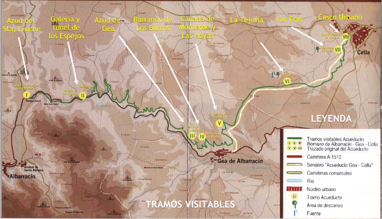 «Entre Cella y Santa Croche, que distan uno de otro dos leguas, permanecen trozos bien conservados de un acueducto de riego, cuyas aguas se tomaban del Turia o Guadalaviar: obra antiquísima y grandiosa que describe con exactitud y detención nuestro académico señor Trágia en su Aparato a la historia eclesiástica de Aragón». (CEA BERMÚDEZ. 1832).