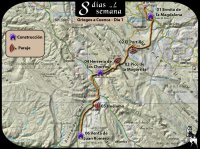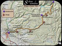 Se pasa junto a la citada localidad para seguir nuestro camino, como el Júcar, en dirección al mediodía, donde tras cruzar una suerte de arroyos provenientes de la Sierra de Valdemeca, se llega a la Venta de Juan Romero, final de la primera de las dos etapas.
