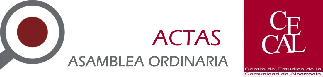 A continuación reproducimos el Acta de la Asamblea Ordinaria del Centro de Estudios de la Comunidad de Albarracín celebrada en la Casa de la Comunidad, Tramacastilla, a las 12.30 horas del día 22 de abril de 2018. En el acto se aprobaron las cuentas de 2017 y se enumeraron, debatieron y aprobaron los proyectos y publicaciones de esta institución para 2018.