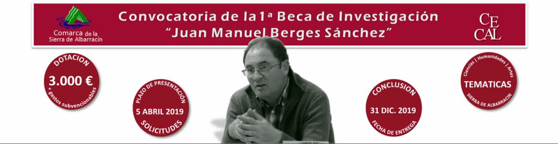 El Centro de Estudios de la Comunidad de Albarracín (CECAL), en colaboración con la Comarca de la Sierra de Albarracín convoca la 1ª Beca de Investigación “Juan Manuel Berges Sánchez”.