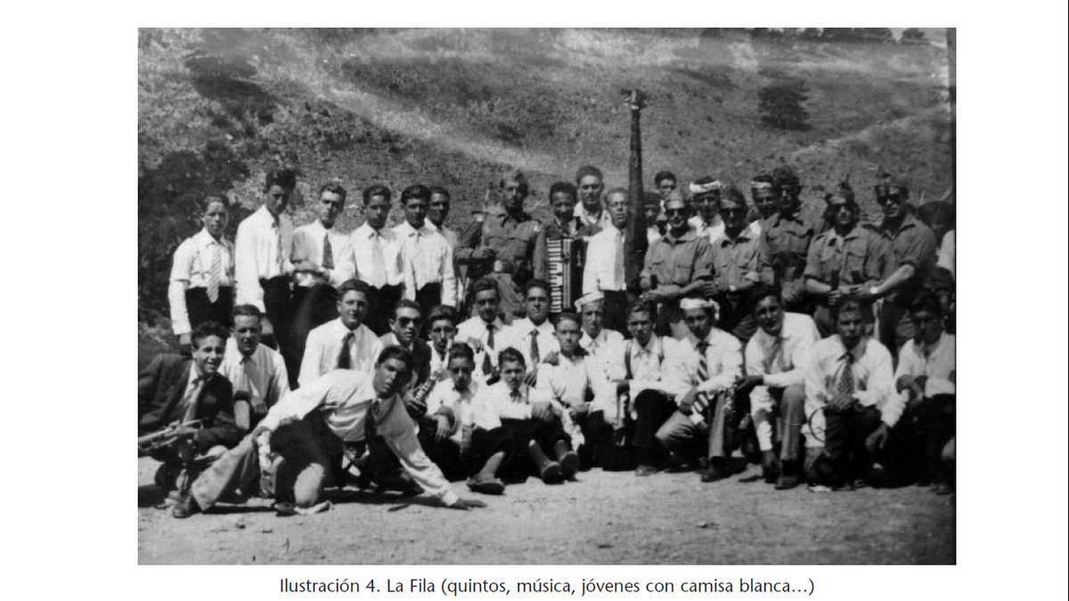La Fila estaba compuesta por los mozos que estaban haciendo el servicio militar. Iban vestidos con su uniforme y portaban sus escopetas. Solo intervenían los MOZOS. Les acompañaban los recién licenciados vestidos de militar. Iban vestidos de fiesta con camisa blanca, corbata y cubrían su cabeza con «casquetas» que eran pañuelos blancos colocados a modo de coronas.