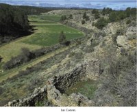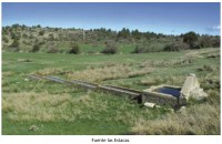 Es una buena zona para descansar al lado de sus choperas. A partir de aquí el horizonte se despeja, aparecen espacios más amplios, sembrados, atravesamos el camino que une El Villarejo con Masegoso y a través de la senda que nos aproxima a la fuente las Estacas, nuestro lugar de destino, pasamos por Las Cuevas, un conjunto interesante de apriscos adosados protegidos del viento del norte por la espalda del roquedo de la margen izquierda.