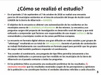 Los datos de campo provienen de 284 encuestas contestadas por residentes y oriundos de varios municipios de la Sierra de Albarracín sobre la vitalidad y dinamismo de la comarca y sus habitantes en aspectos sociales, culturales, económicos, etc. Este mismo estudio se está realizando en otras áreas rurales del Reino Unido y Alemania y con sus datos se pretende hacer un estudio comparativo más amplio que sirva como base de la tesis doctoral de su autor en la Universidad de Ciencias Aplicadas y Arte de Hildesheim, Holzminden y Göttingen (Alemania).