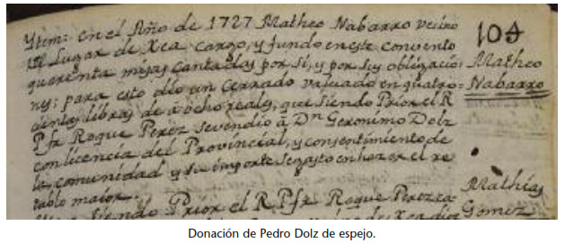 También en 1673 encontramos la donación de D. Pedro Dolz, que aparentemente fue el artífice económico de la construcción del convento con su aportación económica y que era el encargado de velar por los intereses del conde en Xea y otros lugares de la comarca.