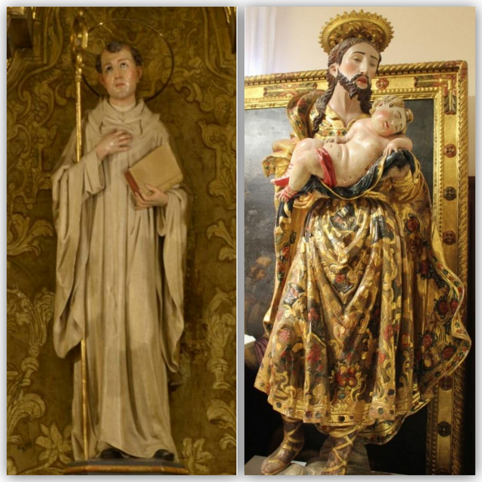 San Bernardo Abad (actual imagen central del retablo) y San José (Imagen central cuando estaba en el convento)*