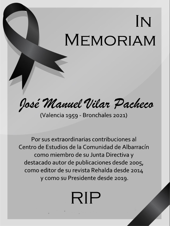 Esta mañana ha fallecido inesperadamente en su domicilio de Bronchales José Manuel Vilar Pacheco (Valencia, 1959), doctor en filología por la Universidad de Valencia, profesor asociado de esta Universidad, destacado autor de ensayos y artículos sobre la Sierra de Albarracín  y actual presidente del Centro de Estudios de la Comunidad de Albarracín.