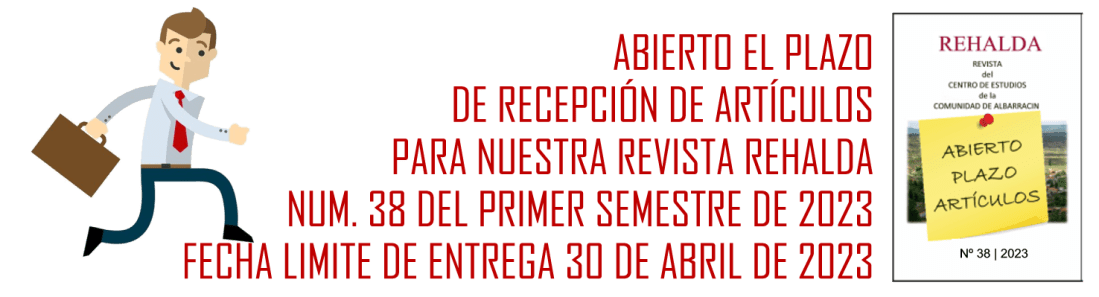 Se abre el plazo de recepción de artículos para su publicación en el próximo número de la revista Rehalda hasta el 30 de Abril de 2023.
