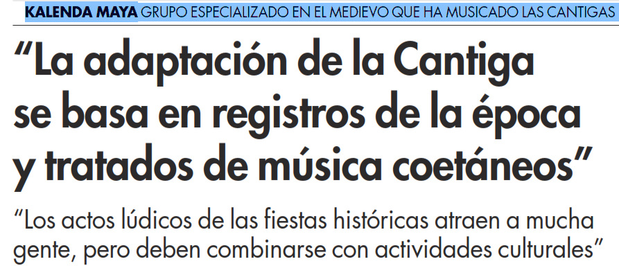 Reproducimos a continuación un artículo de M. Cruz Aguilar en el Diario de Teruel de 29/06/2024 en el que entrevistan al grupo aragonés de música medieval Kalenda Maya que ha musicado la cantiga 191 de Alfonso X El Sabio que se titula «El Milagro de Rodenas».