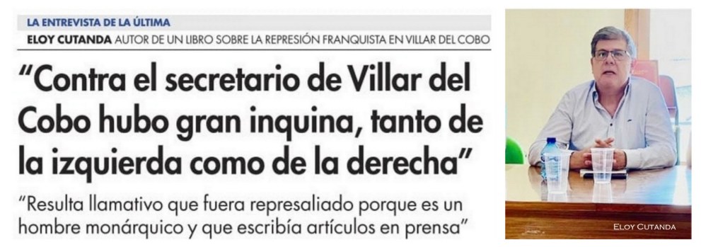 Reproducimos a continuación un artículo de M. Cruz Aguilar publicado en la sección Comarcas de Diario de Teruel el Jueves 11 de Julio de 2024 en el que se entrevista a Eloy Cutanda sobre un libro titulado «El secretario» que trata sobre la represión franquista en Villar del Cobo.