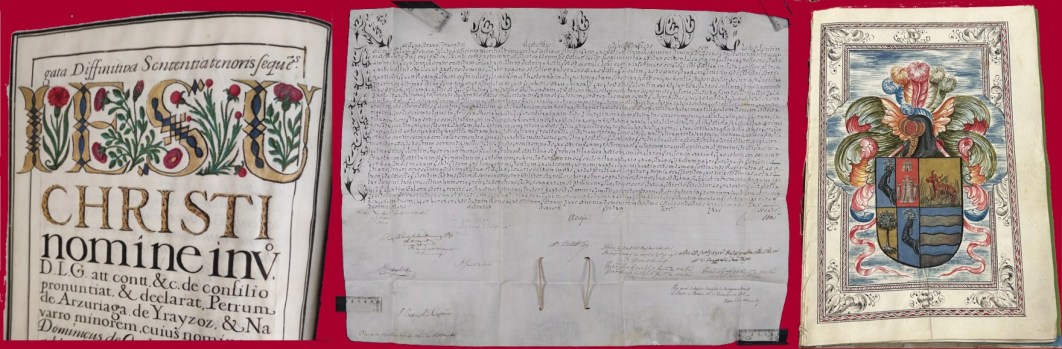 La familia, emparentada con el antiguo alcalde de Zaragoza, Ramón Sainz de Varanda, ha entregado 18 cajas de documentación en papel y unos 60 pergaminos, ha informado el Gobierno de Aragón en una nota de prensa. El contenido es el habitual en este tipo de fondos de matriz hidalga y carácter familiar: enlaces y herencias (capitulaciones matrimoniales, testamentos, codicilios); gestión patrimonial (contratos de compraventa de inmuebles, arrendamientos, libros de cuentas, inventarios de bienes); documentación genealógica y de mantenimiento de los privilegios del linaje (árboles genealógicos, salvas de infanzonías, manuscritos con relatos históricos); eclesiástica (institución de capellanías y beneficios, cofradías).