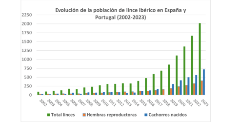 En un período de 23 años, se ha pasado de menos de 100 ejemplares contabilizados en 2002 a más de 2.400, con un incremento aún más destacable en la época reciente, ya que en 2020 la población total era de 1.111 linces.