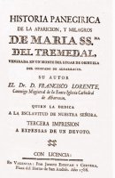 TITULO: Historia panegírica de la aparición y milagros de María SSª del Tremedal: Venerada en un monte del lugar de Orihuela del Obispado de Albarracín. (Reedición facsimil)