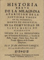 Título: Historia Breve de la milagrosa aparición de la Santísima Virgen en el Tremedal, monte de Orihuela, en la Comunidad de Santa María de Albarracín. (1660)
