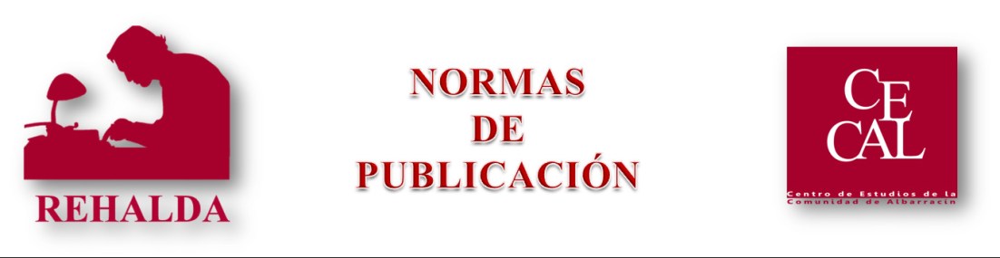 NB: Con la publicación de los trabajos en Rehalda, los autores aceptan la difusión de los mismos en formato digital en aquellos servicios de indexación de contenidos científicos (como Dialnet, Fichero Bibliográfico Aragonés y Latindex) y en las páginas electrónicas que gestiona el CECAL.
